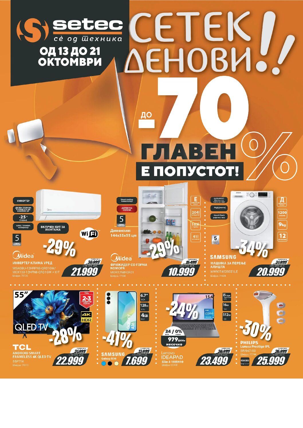 Тука можете да ги пронајдете сите најнови зделки, понуди и попусти од Setec - водечка продавница за технологија и електроника во Македонија. Прелистајте ги најдобрите акции на лаптопи, мобилни телефони, телевизори, мали апарати и компјутерска опрема.