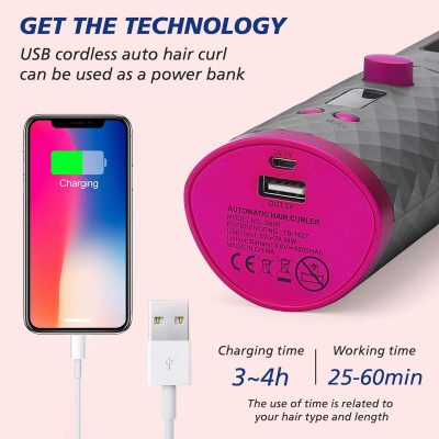Има вградена батерија на полнење 5200mAh за 60 минути работно време, овој виткач за коса ќе ви ја даде потребната подвижност.