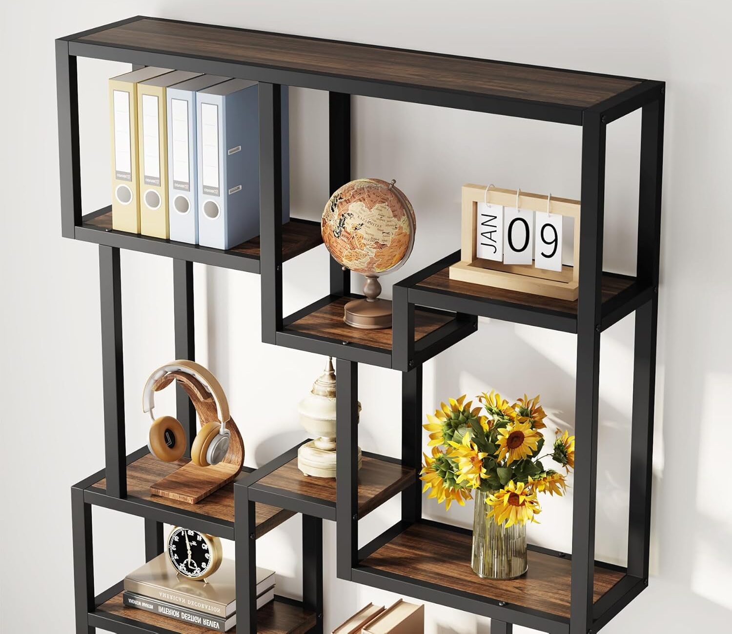 • 7 нивоа за максимално изложување: Со 7 пространи отворени полици, имате доволно простор за вашата колекција на книги, фотографии, антиквитети или собни растенија. Растојанието помеѓу полиците е до 50 cm, што овозможува лесно изложување на повисоки предмети и вазни.