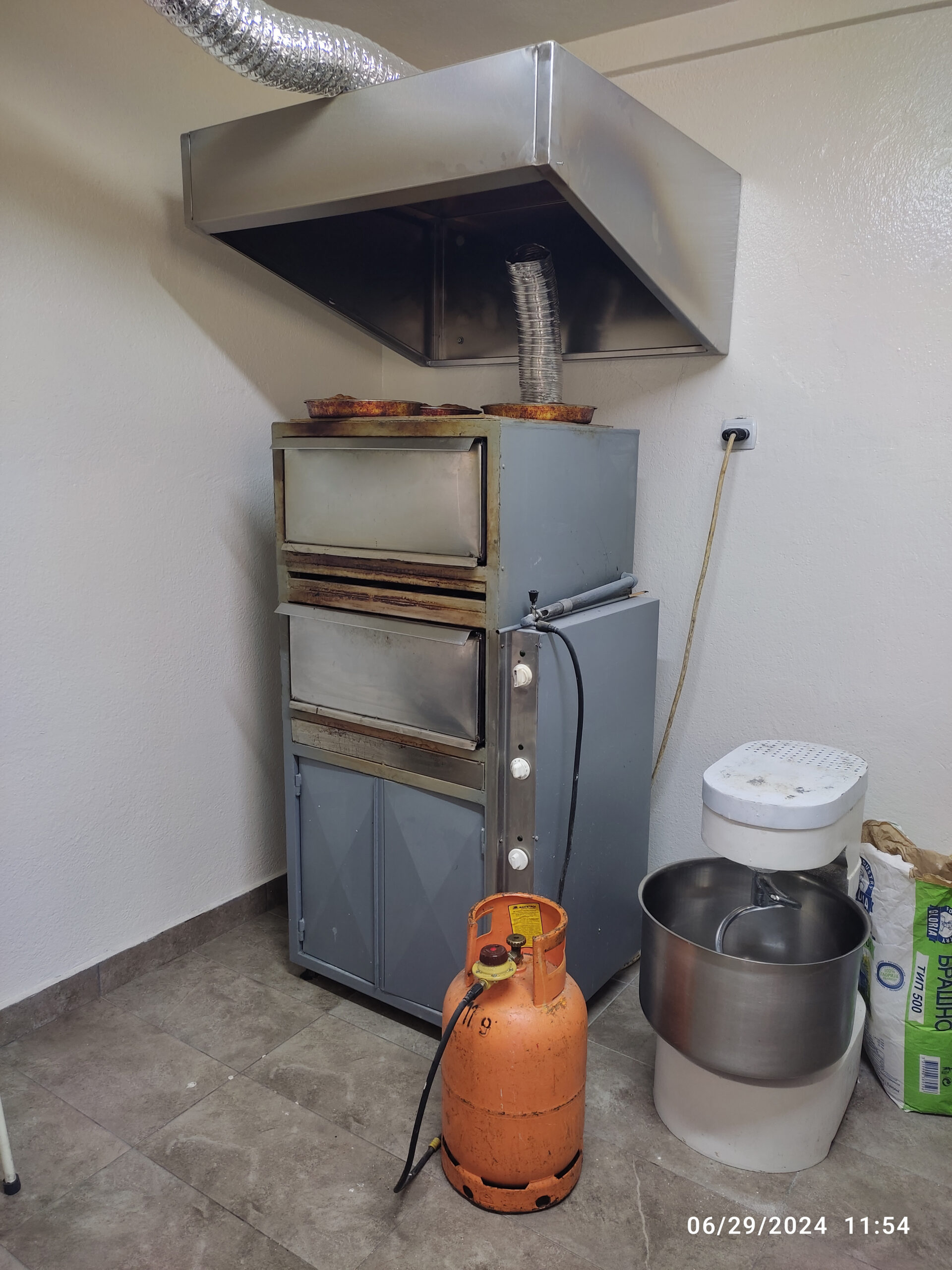 Печка за бурек и бели пецива, со две рерни, една на плин и една на струја, има и мало коморче за стасување долу. 5000 денари