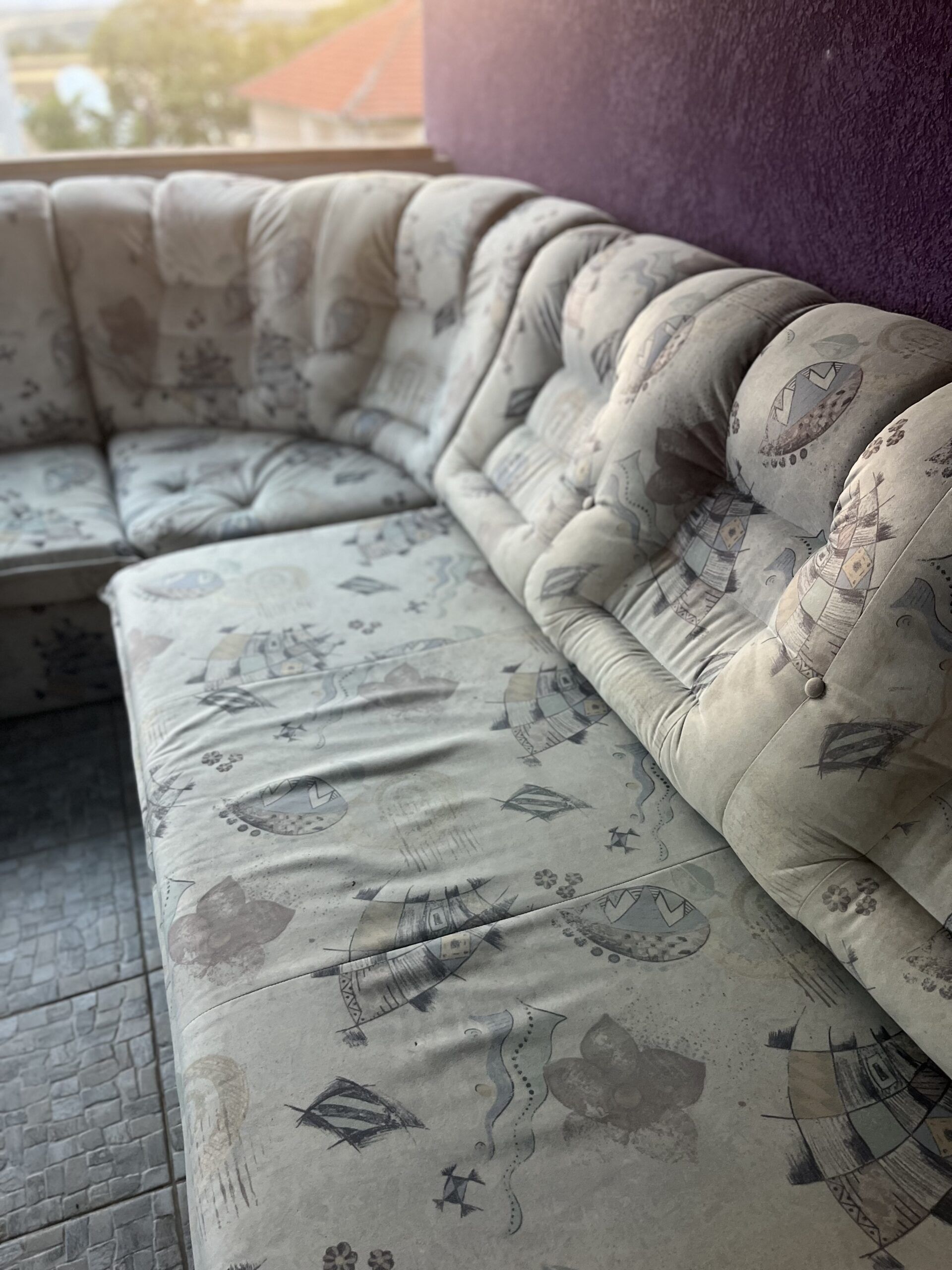 Се продава користена гарнитура која се состои од двосед, тросед, ќош и фотеља.