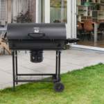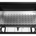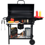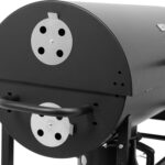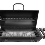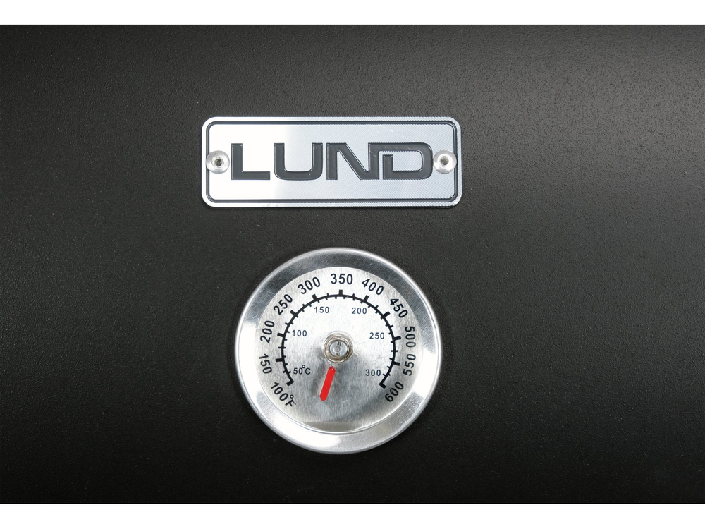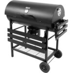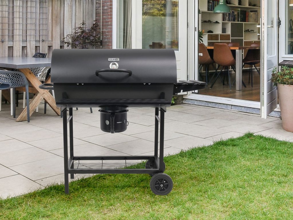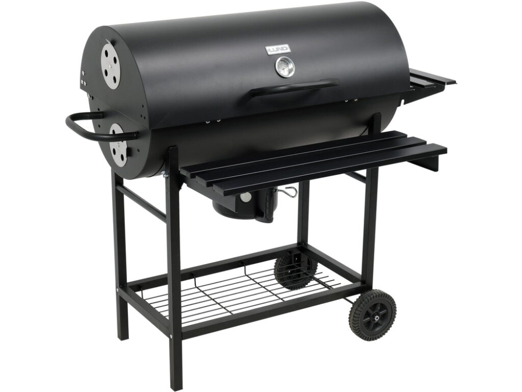 Голема и практична скара на јаглен со капак, наменета за подготовка на скара во двор, викендичка или кампување. Моделот има голема хромирана решетка, капак со термометар и систем за контрола на воздух, што овозможува подобра контрола на температурата и рамномерно печење на храната. Стабилната конструкција со тркала и дополнителни полици овозможува удобна работа и лесно преместување.