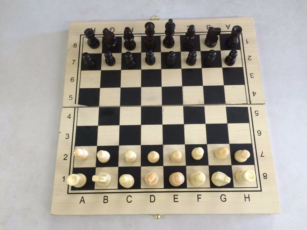 Овој шаховски сет има димензии 28 cm x 28 cm кога е отворен.