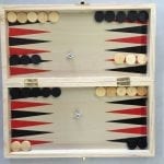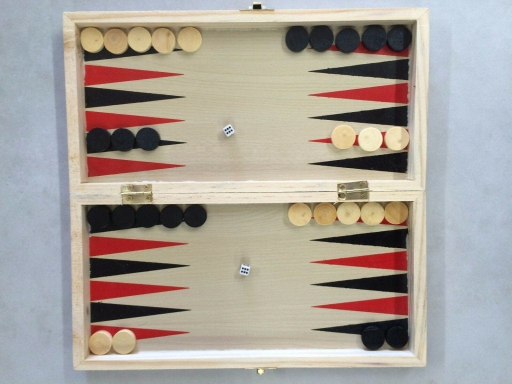 За играта Табла и дама: 15 парчиња бело и 15 парчиња црно. 2 мали коцки.