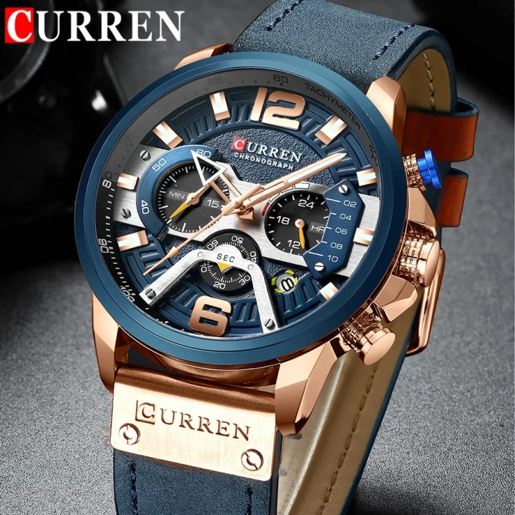 1. CURREN часовник со хронограф, мал бројчаник од секунди, мал бројчаник за минути, мал бројчаник 24 часа