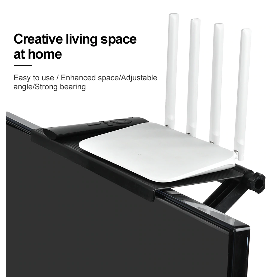 2. Иновативната структура може целосно да го искористи просторот над екранот, можете да ставите далечински управувач, рутер, ТВ кутија, конвертер, очила, и други мали гаџети за брз пристап.