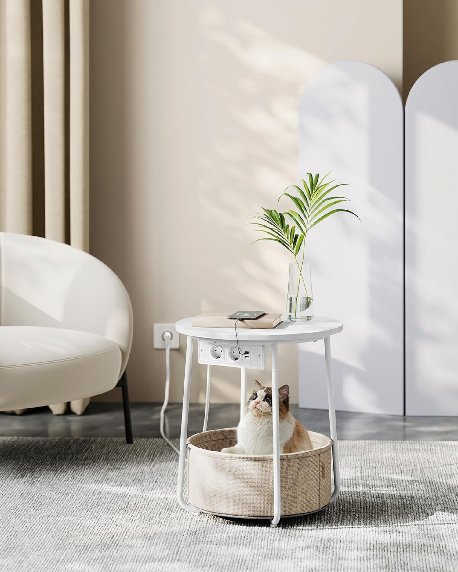 【МОДЕРЕН И ЕДНОСТАВЕН】Оваа мала тркалезна маса во мат бела боја со корпа во кафеава камила ќе додаде оригиналност во вашата дневна или спална соба. Добро оди со многу стилови на мебел.