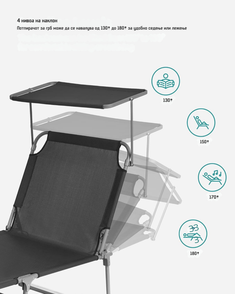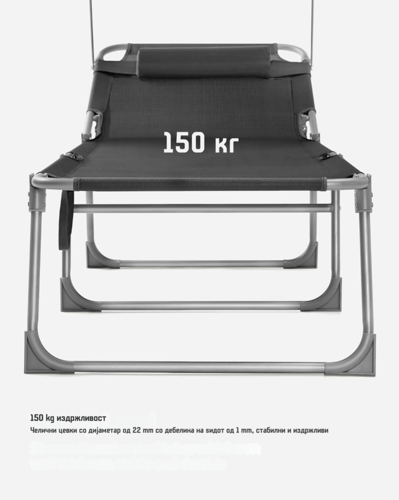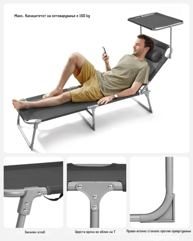 ВРЕМЕ ЗА РЕЛАКСАЦИЈА: По напорната работа, време е да се опуштите на оваа лежалка што дише! Нема потреба да се собирате, само расклопете го, навалете го неговиот потпирач за грб за да ја пронајдете омилената позиција меѓу 4-те и потпрете ја главата на мекиот потпирач за глава. Ајде да одиме на одмор!