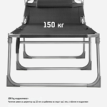Изработена од цврсто железо и синтетичка ткаенина отпорна на УВ, оваа столица за сонце може да издржи до 150 кг;