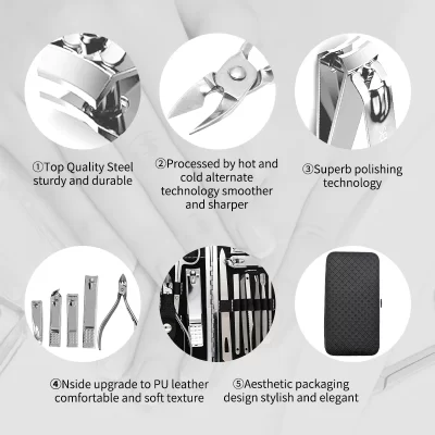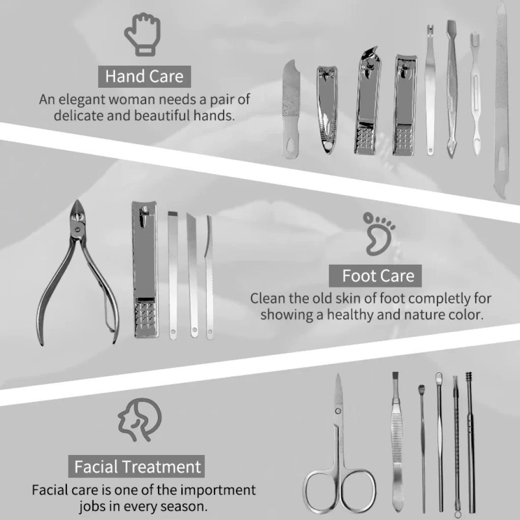 Професионален комплет за маникир Содржи 10 алатки за нега на нокти, нега на раце, нега на лице и нега на стапала. Овој комплет за маникир и педикир го има сето она што ви треба.