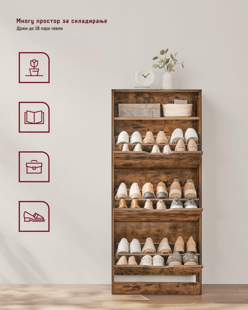 Пространа и разноврсна: овој шкаф за чевли може да собере 14-18 пара чевли. Благодарение на отворената преграда, имате простор и за растенија, фотографии или сувенири, така што вашиот простор не само што ќе биде организиран, туку и уникатен.