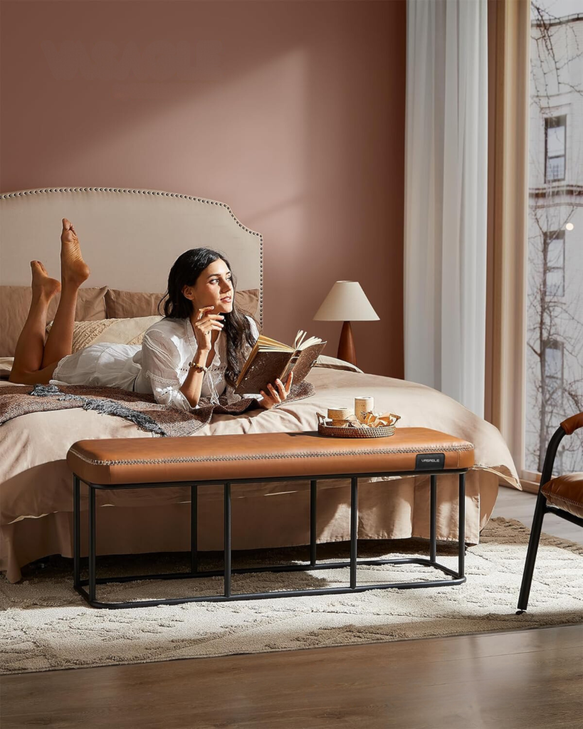 Висок капацитет на носивост – Со цврста челична рамка, оваа клупа за спална соба самоуверено издржува импресивен товар до 300кг.