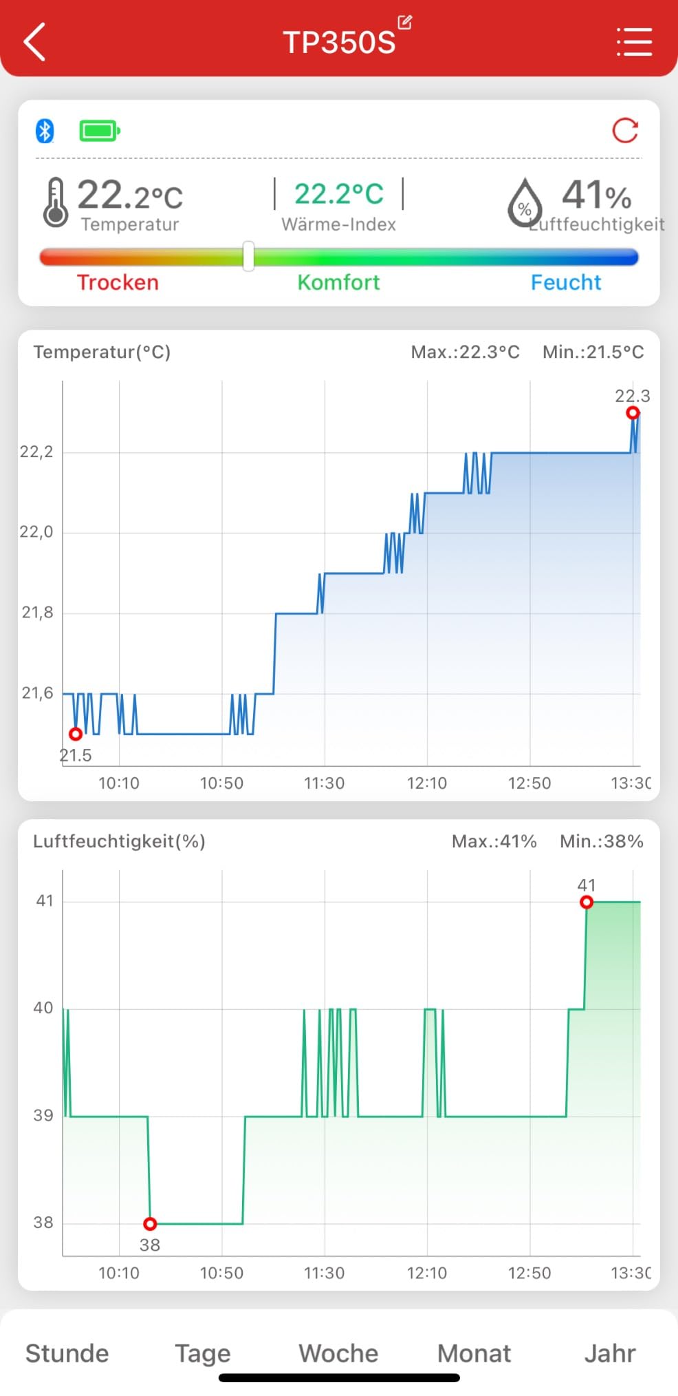Следете ја температурата и влажността од било каде, преку бесплатната мобилна апликација без сложена регистрација. Со 2‑годишна меморија, точни мерења ±0.5 °C/±2 % RH и визуелни икони, овој уред е идеален за родители, одгледувачи на растенија, музички простории и колекционери. Уредот има голем LCD дисплеј, backlight и три можности за поставување – лепење, закачување или магнет.