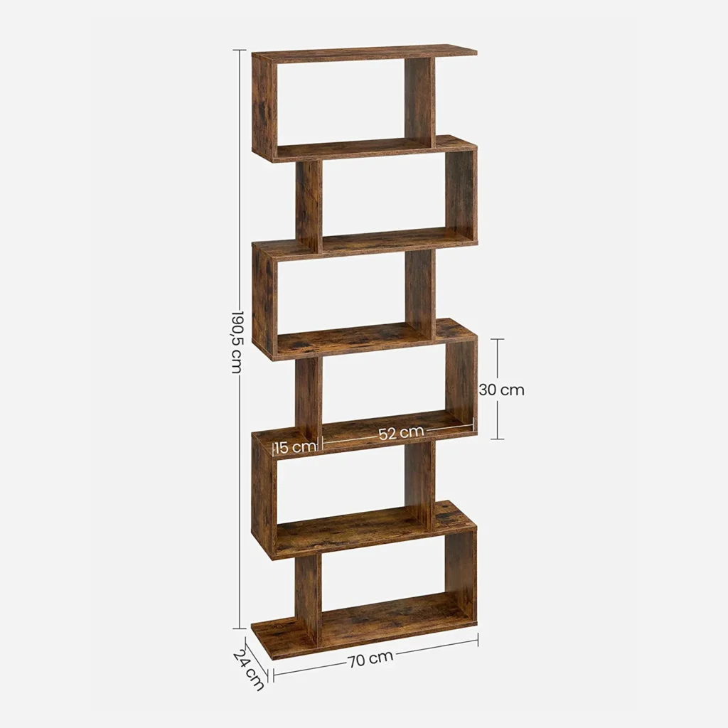 Зачинете го вашиот дом со оваа модерна библиотека со 6 нивоа со уникатен дизајн во форма на S. Дозволете вашите книги, растенија и украси да стојат на прекрасен уникатен дисплеј кој ја раскажува својата приказна.